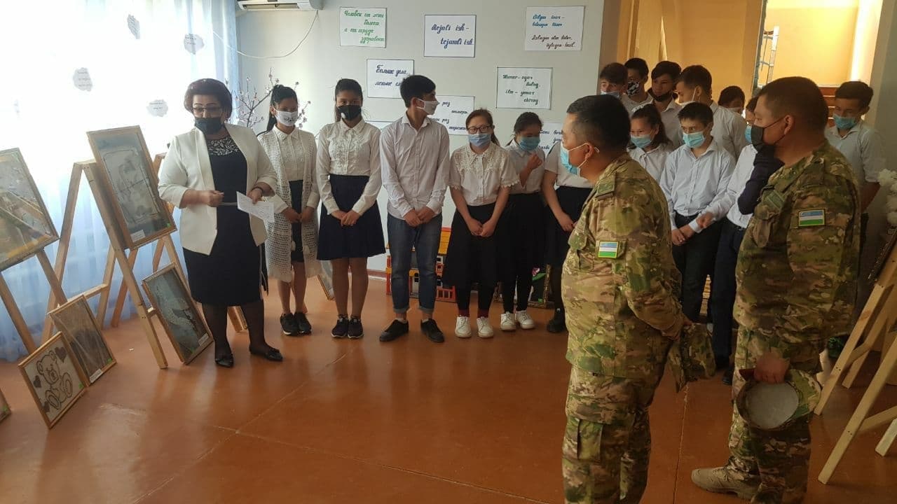Uchrashuvda Mudofaa Vazirligi Toshkent okrugining tarbiyaviy-mafkuraviy ishlar boʼyicha ofitser-mayor Zohid Joʼraev va kapitan Qahramon Ziyadinovlar ishtirok etdi. Tadbir davomida oʼquvchi yoshlar oʼzlarini qiziqtirgan savollariga mehmonlardan javob oldi. Uchrashuv soʼnggida maktabning iqtidorli oʼquvchilari tomonidan tayyorlangan ijodiy ishlar koʼrgazmasi tashkil etildi.