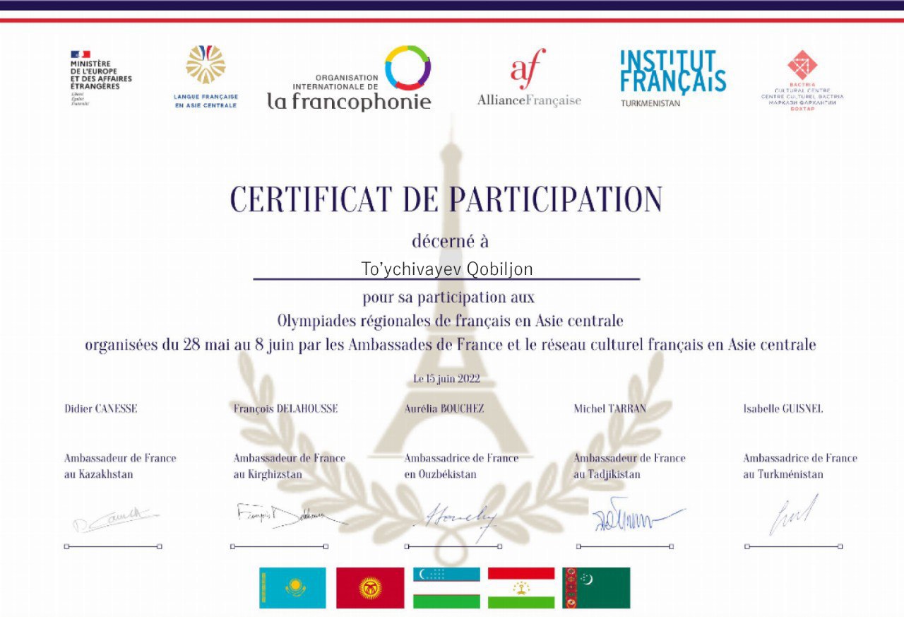 Fransuz tili fanidan O‘rta Osiyo mamlakatlari o‘rtasida o‘tkazilgan olimpiada natijalari e’lon qilindi.