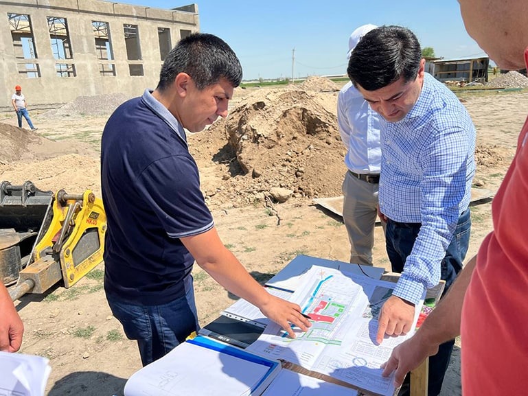 Xalq ta’limi vaziri Toshkent viloyatidagi maktablar qurilishi bilan tanishmoqda (31-may 2022-yil)