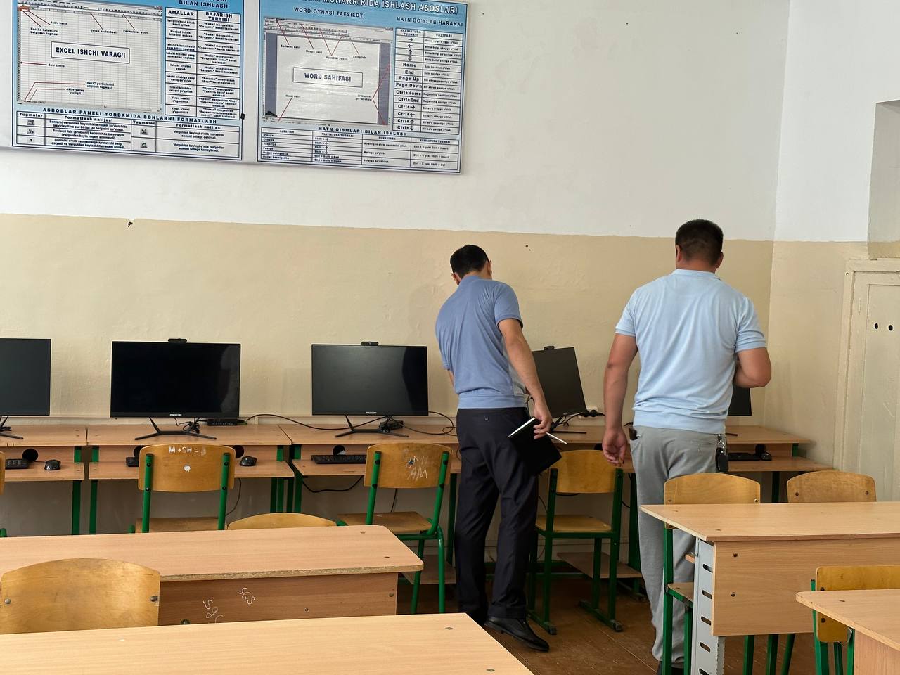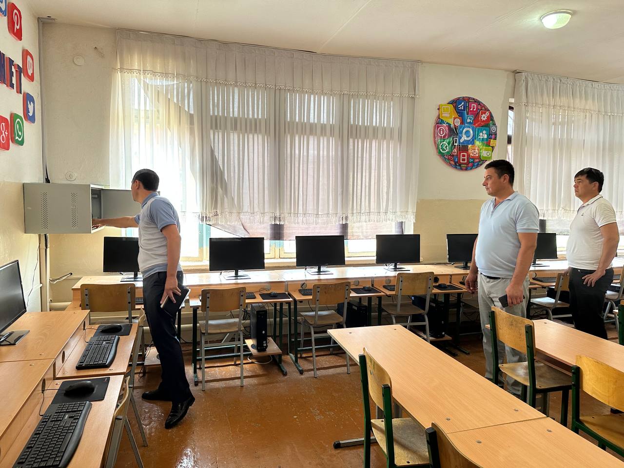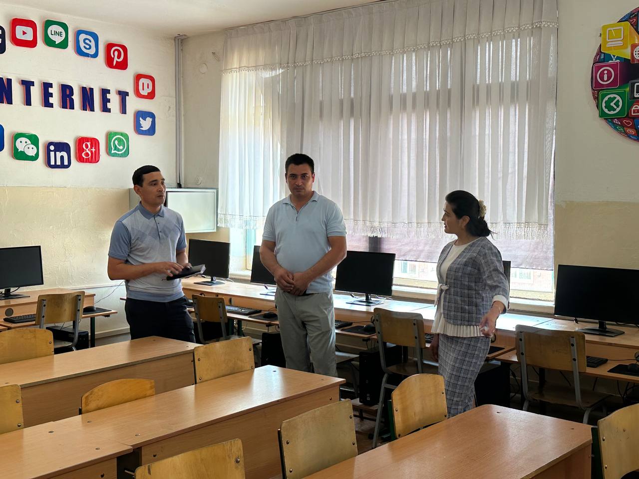 Шунингдек, тадбирда Ўзбекистон Республикаси Мактабгача ва мактаб таълими вазирлигининг АКТни жорий этиш ва рақамлаштириш бўлими ходими К.Ураков иштирок этиб, тадбир давомида тумандаги 18- ва 17-мактабларнинг информатика синф ҳоналаридаги моддий техник базалари кўздан кечирилиб, самарали фойдаланиш бўйича танқидий ўрганилиб, тегишли тавсиялар берилди.