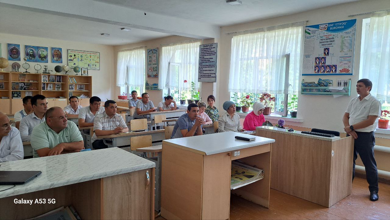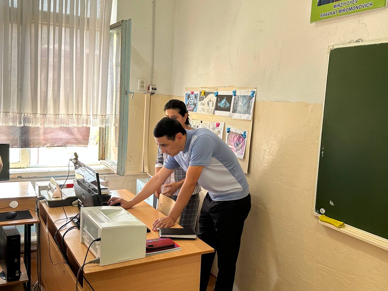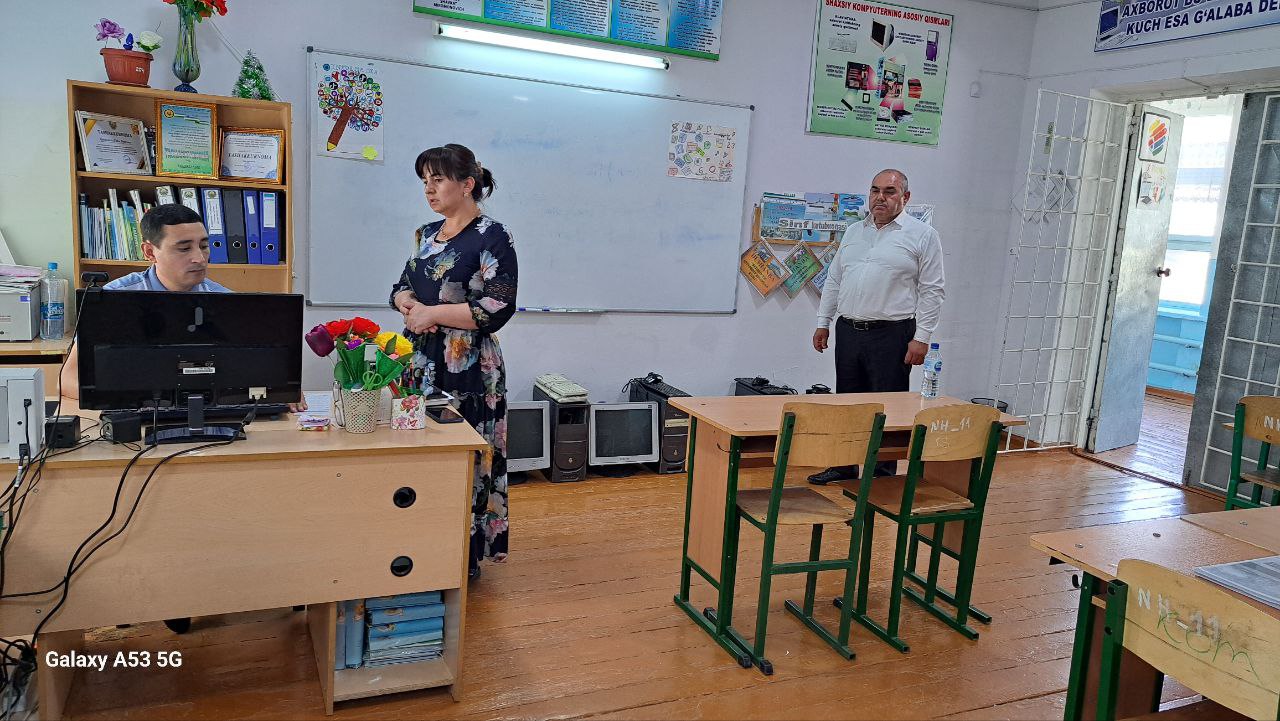 Шунингдек, тадбирда Ўзбекистон Республикаси Мактабгача ва мактаб таълими вазирлигининг АКТни жорий этиш ва рақамлаштириш бўлими ходими К.Ураков иштирок этиб, тадбир давомида тумандаги 18- ва 17-мактабларнинг информатика синф ҳоналаридаги моддий техник базалари кўздан кечирилиб, самарали фойдаланиш бўйича танқидий ўрганилиб, тегишли тавсиялар берилди.